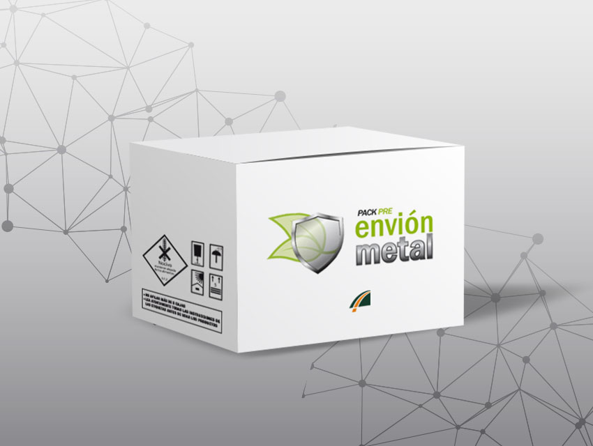 Pack Pre Envión Metal está compuesto por ENVIÓN ACUOSO, inoculante líquido acuoso para el tratamiento de semillas, que contiene bacterias fijadoras de nitrógeno atmosférico; DIMENSIÓN, fungicida especialmente formulado como microemulsión para el tratamiento de semillas de soja que combina la acción de Ipconazole y Metalaxil; y HULK, protector líquido acuoso con agentes nutricionales que permiten la supervivencia de las bacterias sobre las semillas por un período de hasta 20 días.